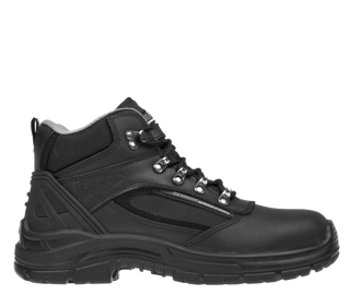 Robustné moderné vysoké bezpečnostné topánky a ochranná obuv s mimoriadne širokým strihom z robustnej zvrškovej usne s hydrofóbnou úpravou na náročné použitie v exteriéroch, napríklad v stavebnom priemysle