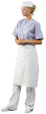 Biela zástera s náprsenkou, upevnenie v páse na šnúrku, rozmer 80x100cm, materiál: keper 100% bavlna 260g/m2