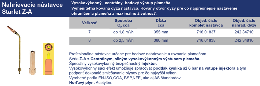 • Nástavce Starlet Z-A pre bodové nahrievanie a rovnanie plameňom.
